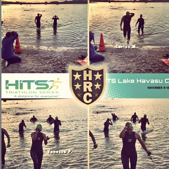 We were on our way to Lake Havasu for my second attempt to finish a triathlon. The day before the race, Alan had us swim in the lake with our wetsuits…but did I mention we actually swam at night? Yes! We swam in the lake at night! I was thinking to myself:  “ok great! I freaked out the first time I tried to swim in a lake because I was not able to see anything underneath the water and now we have to swim at night? Good thing I wasn’t going to do this alone.