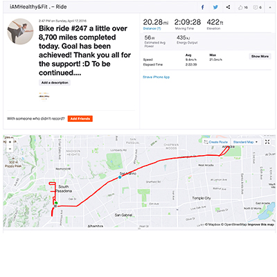 After I fully recovered, I was ready to continue with my goal: Ride 100 miles a week until I complete 8,761 miles
